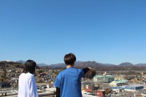 屋上にて地域の説明 |